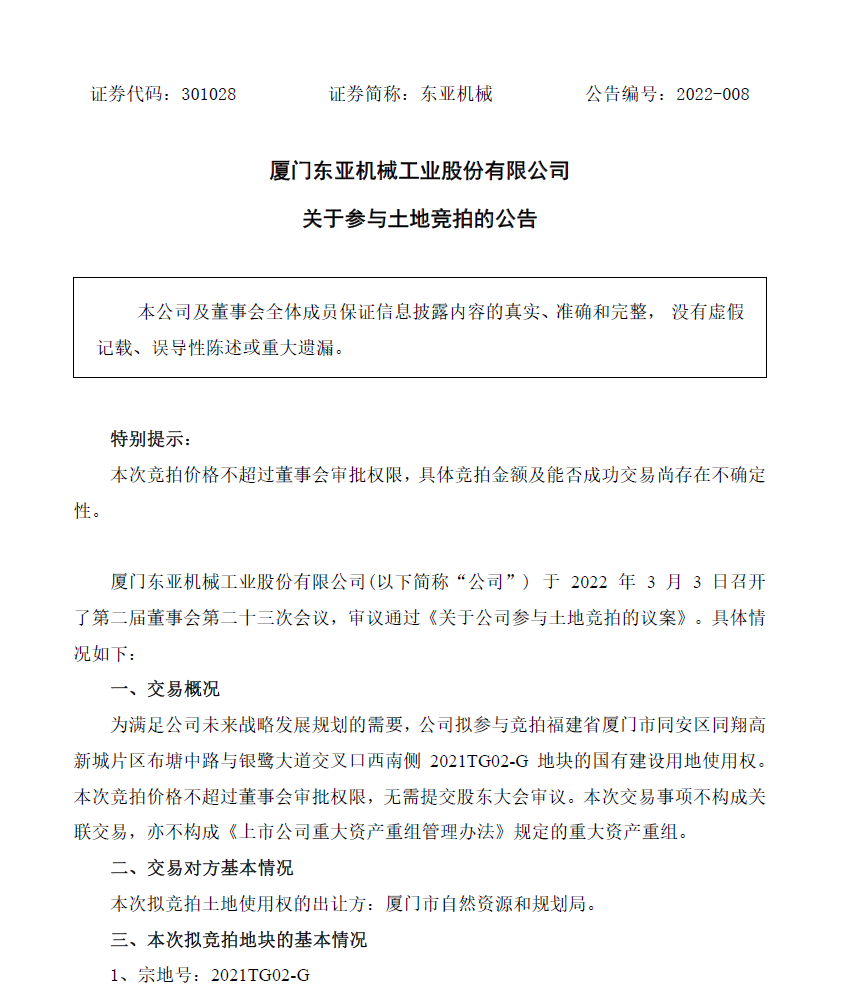 Regular announcement