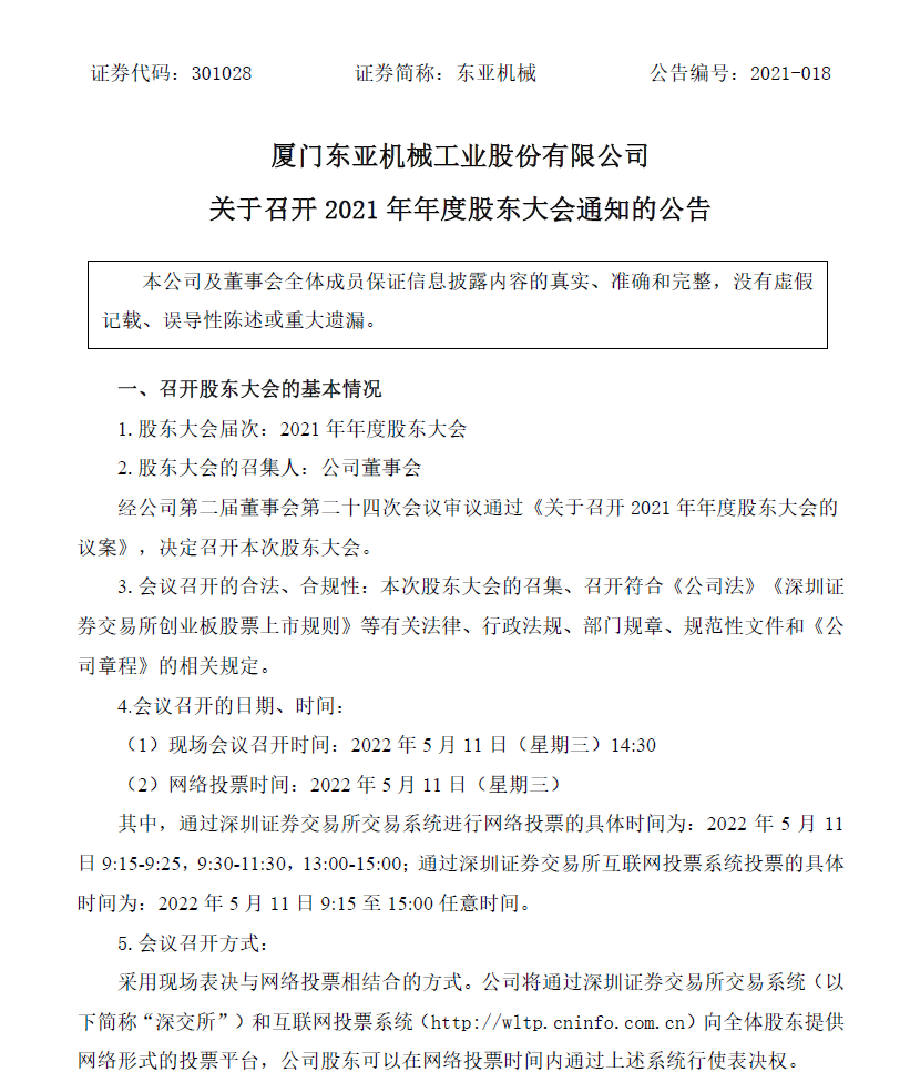 關(guān)于召開2021年年度股東大會通知的公告