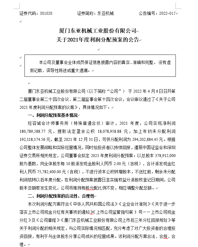 關(guān)于2021年度利潤分配預(yù)案的公告